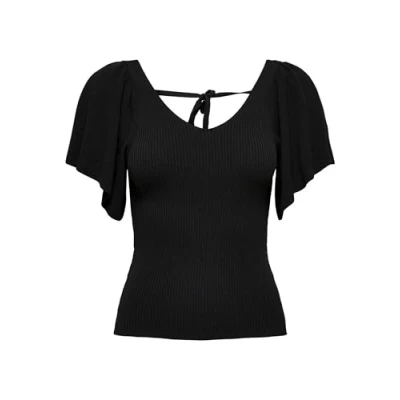 ONLY Women's ONLLEELO S/S Back Pullover KNT NOOS T Shirt, Black, M