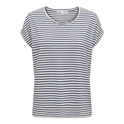 ONLY Women's Onlmoster Stripe S/S O Neck Top JRS Noos T Shirt, Cloud Dancer/Stripes:Naval Academy, M