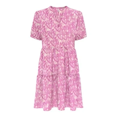 ONLY Women's Onlnova Life Vis S/S Thea Dress AOP, Shocking Pink, M