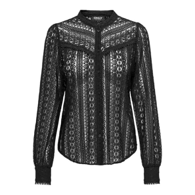 ONLY Women's Onlreba Lace L/S Shirt WVN Noos Long Sleeve Blouse, Black, XS