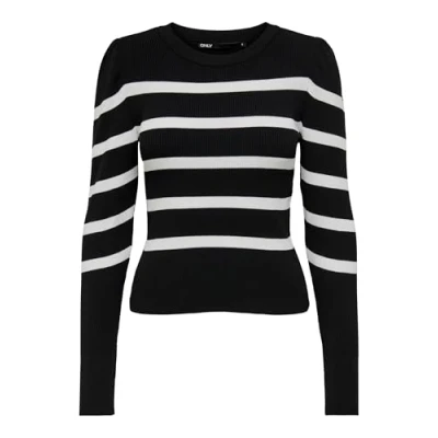 ONLY Women's Onlsally L/S Puff Pullover KNT Noos Sweater, Black/Stripes: w. Cloud Dancer, S