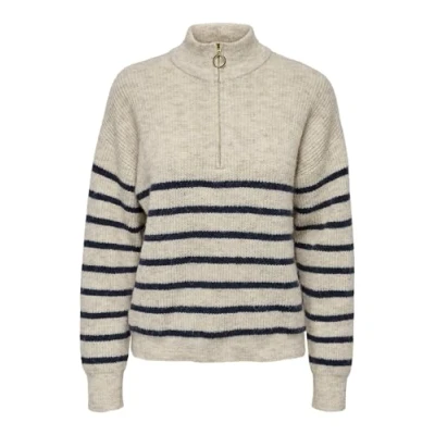 ONLY Women's Onltokyo L/S Highneck Zip Pullover KNT Sweater, Pumice Stone/Stripes: Blue Stripes, XS