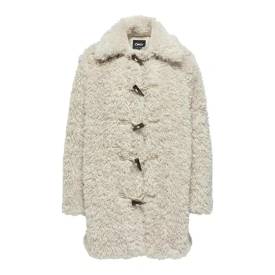 ONLY Women's Onlviki Faux Fur Duffle Coat OTW, Gray, L