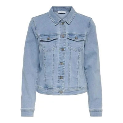 Womens Only Wonder Life Denim Jacket in light blue.- Classic point collar.- Full button placket with branded metal shanks.- Long sleeves with buttoned cuffs.- Side hand pockets.- Button-flap chest pockets.- Slight stretch to denim.- Fitted style.- Regular fit.- 79% Cotton 20% Polyester 1% Elastane. Machine washable. - Ref: 15243147A