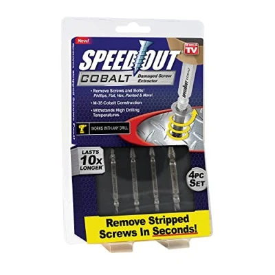 Versatile And Long Lasting: This Heavy Duty Screw Remover Kit Includes 4 Different Sized Bits Featuring A Cobalt Coating That Lasts 6 Times Longer Than Regular Bits Package Dimensions :4.3 Cm L X13.0 Cm W X19.8 Cm H Country Of Origin :China Easy To Use: If You Can Use A Drill, You Can Use This Remover Kit; In Fact, This Patented Process Works So Well It Can Even Remove 4 Inch Long, Stubborn Deck Screws Out Of Redwood Screw Extractor Set: The Ontel Speed Out Damaged Screw And Bolt Remover Kit Easily Removes Any Stripped, Damaged Or Broken Screw Or Bolt In Seconds; Works With Any Drill, Manufacturer: Ontel Speed Out
