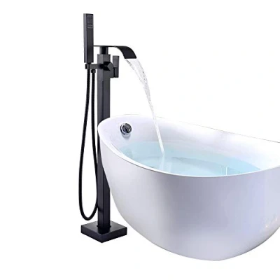 Onyzpily Freestanding Bath Taps Bathroom Mixer Tap Bathtub Handheld Shower Head Floor Mounted Brass Black