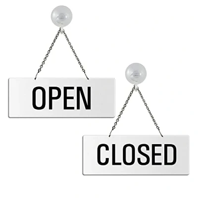 Open Closed Sign made of white melamine plus suction cup 175 x 65 mm 31201 WS