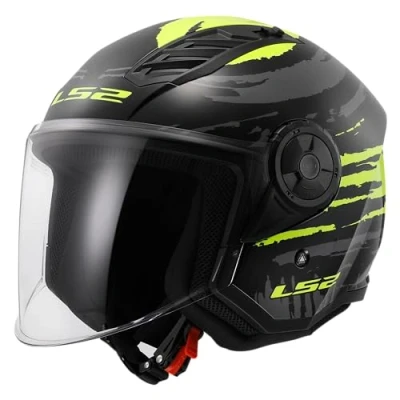 Open Faced Motorcycle Helmet. LS2 Airflow II ECE 22.06 BRUSH BLACK H V YELLOW