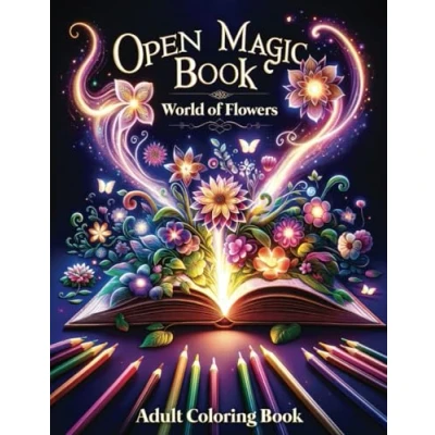 Open Magic Book World of Flowers Adult Coloring Book: 70 Grayscale Illustrations Enchanting in (Open Books)