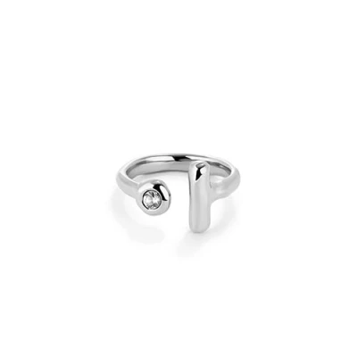 Silver plated open ring with white topaz on one end and bar on the other Made in Spain using a 100% handmade process A collection in which topaz, clean lines and geometric shapes become the protagonists, without filter A timeless piece of jewellery that will become your amulet Includes the iconic red padlock box