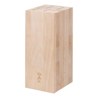 The Opinel knife block made of beech for displaying Opinel kitchen and table knives Cut-outs allow 5 knives to be inserted Holds up to 4 x large blades and 1 x small blade The knife block measures 10.1 x 23 x 11.6 cm The block is delivered without a knife