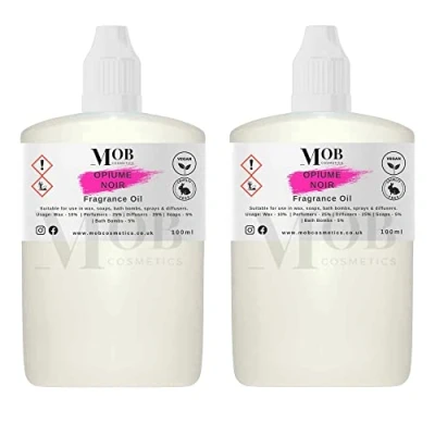 Opiume Noir Luxury and Designer Fragrance Oil Highly Concentrated Perfect for Candles, Soaps, Bath Bombs, Diffusers, Wax Melts UK Made Vegan (Opiume Noir, 100ml (Pack of 2))