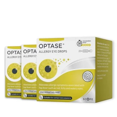 Itchy eyes? Inflammation? Suffering from Hayfever? Optase Allergy Eye Drops contains a unique formulation created for the treatment and prevention of allergy symptoms Our key ingredient Ectoin has been shown to be a well tolerated, safe, molecule with anti-inflammatory and anti-allergic properties that creates a protective barrier against the entry of allergens Preservative and phosphate free eye drops that are packaged in 20 convenient 0.5ml single dose units - great for taking with you on the go Our unique formula supplements the aqueous layer and helps wash away allergens that cause irritation and inflammation in your eyes Suitable for all contact lens wearers and children as young as 1 year +