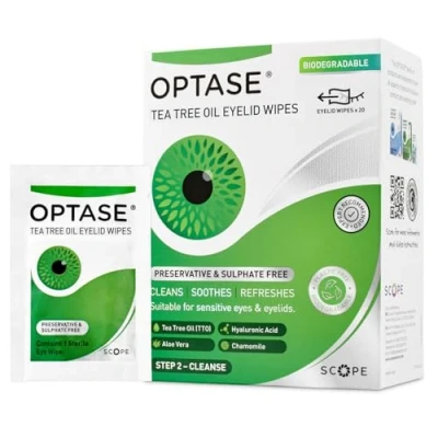 SOOTHING - Optase TTO Wipes contain soothing and moisturising properties of Tea Tree Oil, Hyaluronic Acid, Camomile and Aloe Vera for daily eye hygiene RELIEF - Provides instant relief for tired and dry eyes plus effective and long-lasting relief from dry eye symptoms and blepharitis CLEANSING - Eye wipes are textured to help with the removal of debris, crusting and excess oils from your eyelids GENTLE- Gentle enough to be used as part of your daily dry eye routine with no need to rinse off after use BIODEGRADABLE - Each box contains 20 individually wrapped, preservative and plastic free, biodegradable eye lid wipes