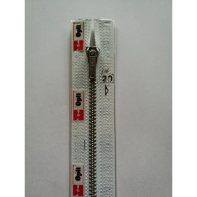 High-quality zip A metal zip with nickel-coloured metal teeth Ideal for use on e.g. jeans, bags, knitwear, or outdoor clothing This non-divisible metal trouser zip in silver (nickel) finish has a Werra slider, 4.2mm (M40) tooth and is 16cm long. Opti zippers are strong, run smoothly and are safe to use.