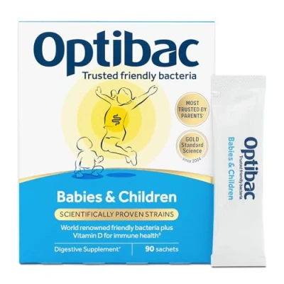 OPTIBAC PROBIOTICS FOR BABIES & CHILDREN: Probiotic scientifically proven to reach the gut alive to support your children's natural gut bacteria 3 BILLION CFU: Optibac guarantees 3 billion live probiotic bacteria in every sachet & 0.5g FOS fibres to increase children's friendly gut bacteria ADVANCED STRAINS: Especially formulated probiotic supplement for little tummies - contains a blend of 3 of the most researched friendly bacteria strains for babies & children, including Lactobacillus rhamnosus GG, the most researched strain in the world VITAMIN D: This digestive supplement has added vitamin D3 to help maintain immune health A VEGETARIAN, MORE NATURAL OPTION: This probiotic for children is vegetarian, gluten free, dairy free, flavourless & free from added sugar unlike many other immune system booster supplements. Suitable for children aged 0-12 years