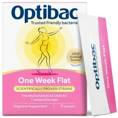 Optibac Probiotics One Week Flat Vegan Digestive Probiotic Supplement Powder Suitable for Bloating with 5 Billion Bacterial Cultures 1 Supply, 7 Sachets