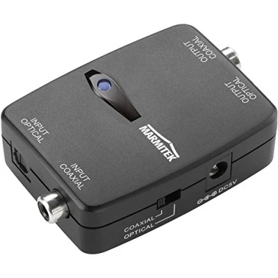 Optical to Coaxial Audio Converter Marmitek Connect TC22 Coax Toslink Two Way (2 Way) Dolby 5.1 PCM stereo Both Outputs Active at the Same Time No Quality Loss