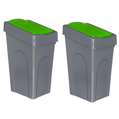 Optimal Products 50L Plastic Recycling Bin Rubbish Dustbin Kitchen Garden Recycle Waste With Lid (Green, 2)