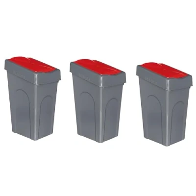 Optimal Products 50L Plastic Recycling Bin Rubbish Dustbin Kitchen Garden Recycle Waste With Lid (Red, 3)