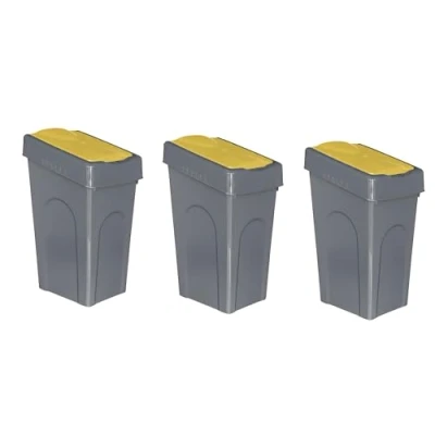 Optimal Products 50L Plastic Recycling Bin Rubbish Dustbin Kitchen Garden Recycle Waste With Lid (Yellow, 3)