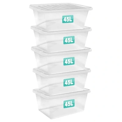 These Can Be For Multi Purpose Storage Shoes , Clothes, Blanket, Duvet And Many More Also Can Be Used For Storing Liquid Plastic Storage Boxes Made In The UK From High Quality Plastic, All These Boxes Are Stackable 5l, 11l, 24l, 28l Underbed, 35l & 45 Litre Storage Container Is Ideal For Storing Small, Medium To Large Sized Items Such As Cloths, Stationary, Household Cleaning Items, Car Products Etc... This Containers Comes With Clear Base And Clear Lids. Can Be Stacked With Or Without Lid Attached Size: The Below Measurements Are Based On The Selected Product(S) External Dimensions Unless Otherwise Stated. Measurements Have Been Supplied By The Manufacturer.: Measurements Approx: All The Measurements And Distentions Are Displayed Along With The Pictures Please Select The Number Of Boxes And Size From Drop Down Menu According To Your Need.