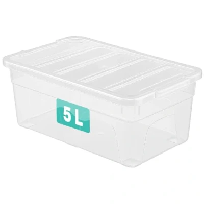 Optimal Products Clear Storage Box With Lids UK BRITISH MADE Home Office Stackable Transparent Plastic Boxes, Size 5,11,24,28,35,45 Litre (1 Box, 5 Ltre)