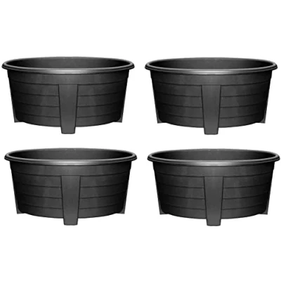 Optimal Products Long Trough/Oval/Square Plant Pot Plastic Planter Indoor Home Outdoor Garden Window Herb Flower Box (55cm Oval Ebony, 4)