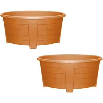 Optimal Products Long Trough/Oval/Square Plant Pot Plastic Planter Indoor Home Outdoor Garden Window Herb Flower Box (55cm Oval Terracotta, 2)
