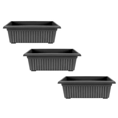 Optimal Products Plastic Trough Plant Pot Long Planter Outdoor Garden Herb Flower Box UK (55cm Volcanic Ash, 3)