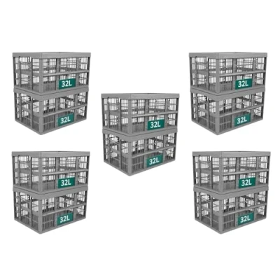 Optimal Products Strong Folding Collapsible Plastic Storage Crates Boxes Stackable Basket 32L (PACK OF 10)