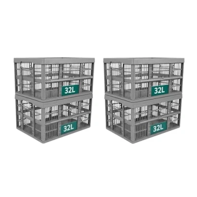 Optimal Products Strong Folding Collapsible Plastic Storage Crates Boxes Stackable Basket 32L (PACK OF 4)