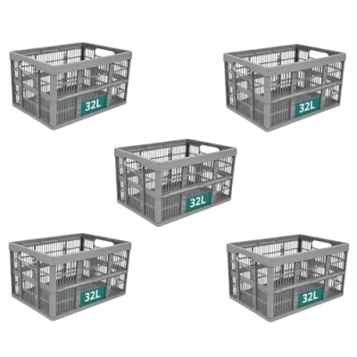 Optimal Products Strong Folding Collapsible Plastic Storage Crates Boxes Stackable Basket 32L (PACK OF 5)