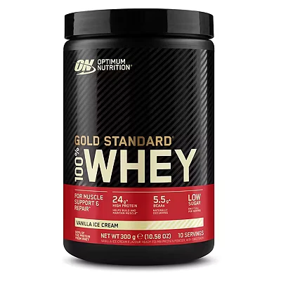 Optimum Nutrition Gold Standard 100% Whey Muscle Building and Recovery Protein Powder with Naturally Occurring Glutamine BCAA Amino Acids, Vanilla Ice Cream Flavour, 10 Servings, 300g