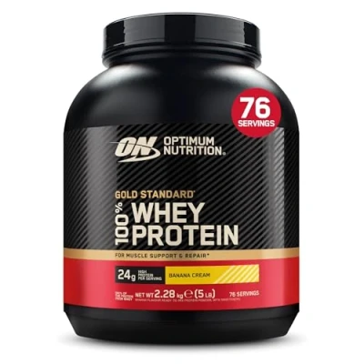 Optimum Nutrition Gold Standard Whey Muscle Building and Recovery Protein Powder With Naturally Occurring Glutamine Amino Acids, Banana Cream, 76 Servings, 2.28kg, Packaging May Vary