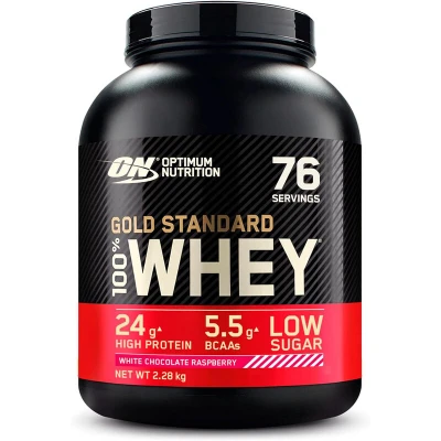 Optimum Nutrition Gold Standard Whey Muscle Building and Recovery Protein Powder With Naturally Occurring Glutamine Amino Acids, White Chocolate Raspberry, 76 Servings, 2.28kg, Packaging May Vary