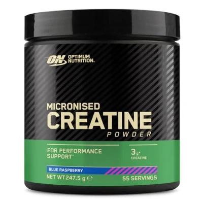 Optimum Nutrition Micronised creatine Powder Flavoured, Blue Raspberry 3 g monohydrate per serving, muscle support for high intensity training, 247.5 g, 55 servings performance supplement