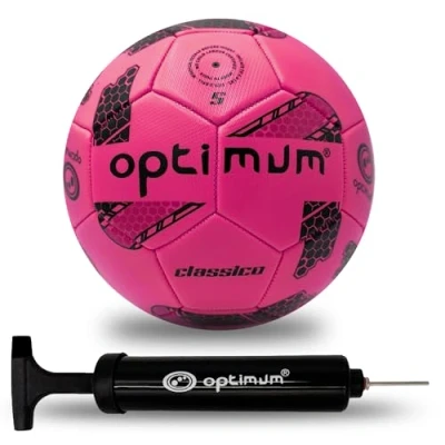 Optimum Sport Classico Football for Indoor/Outdoor Training & Matches, Durable Valve Consistent Flight, Precision Control Lasting Air Retention Size 5, Ball Pump Included, Pink