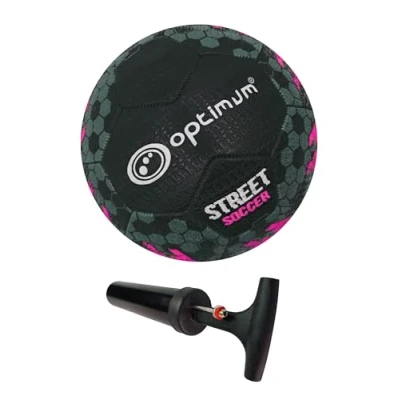 Optimum Street Football Top Grade Durable Rubber Long Lasting Tire Grip Ideal for Concrete & Asphalt, All Weather Size 4, Ball Pump Included, Black/Pink