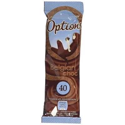 Options Belgian Chocolate 11g sachets. Box quantity: 100