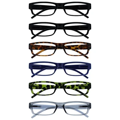 OPULIZE Ace Reading Glasses 6 Pack Classic Everyday Narrow Frame Scratch Resistant Spring Hinges Black Brown Blue Green Grey Mens Womens RRRRRRR32 112367 +1.00