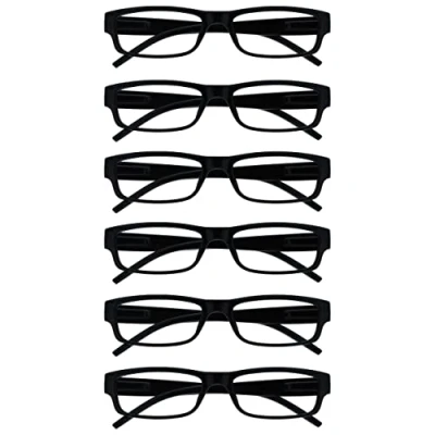 OPULIZE Ace Reading Glasses 6 Pack Classic Everyday Narrow Frame Scratch Resistant Spring Hinges Black Mens Womens RRRRRRR32 +1.00
