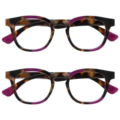OPULIZE Ava Reading Glasses 2 Pack Flattering Rounded Frame Spring Hinges Scratch Resistant Brown Tortoiseshelll Purple Mens Womens RR62 5 +1.00