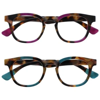 OPULIZE Ava Reading Glasses 2 Pack Flattering Rounded Frame Spring Hinges Scratch Resistant Brown Tortoiseshelll Purple Turquoise Mens Womens RR62 5Q +3.50