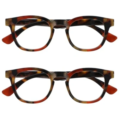 OPULIZE Ava Reading Glasses 2 Pack Flattering Rounded Frame Spring Hinges Scratch Resistant Brown Tortoiseshelll Red Mens Womens RR62 Z +1.50