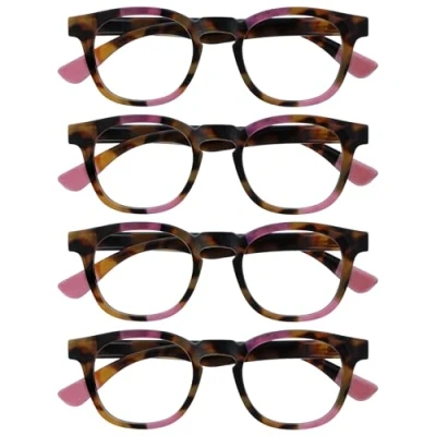 OPULIZE Ava Reading Glasses 4 Pack Flattering Rounded Frame Spring Hinges Scratch Resistant Brown Tortoiseshelll Pink Mens Womens RRRR62 +2.50