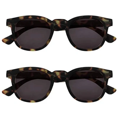 OPULIZE Bay Sunreading Glasses 2 Pack Cool Thick Round Frame Spring Hinges Scratch Resistant Tinted Lens UV400 Protection Matt Brown Tortoiseshell Mens Womens SS97 +1.00
