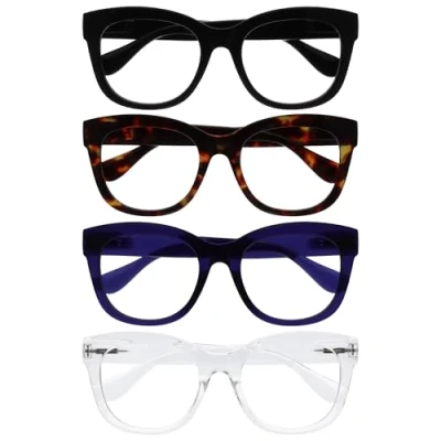 Meditation for your eyes – The most advanced lenses we’ve ever made, that turn visual noise and distracting light into calm for every part of your day. Ultimate Eye Comfort with Anti-Reflective Lenses – BIG's advanced AR, anti-glare technology reduces harsh reflections from screens, headlights, and bright lights—helping your eyes feel relaxed and calm all day long. Work Smarter with Advanced Blue Light Protection – Designed for screen-heavy days, BIG filters harmful blue light to reduce eye strain, boost focus, and help prevent headaches. Ideal for working professionals, gamers or students. Bold, Fashion-First Eyewear with Zero Strength – BIG is all about making a statement but protecting your eyes at the same time. These oversized, trendy frames combine elevated style with all day light protection - ideal for eye health, boosting your circadian rhythm and improving consistent sleep. Colour: Black / Brown Tortoiseshell / Indigo Blue / Clear - 4 Pack - Pouches Included