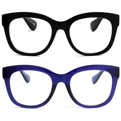 【MEDITATION-INSPIRED VISUAL COMFORT LENSES】– BIG’s advanced lenses are designed to reduce visual noise and distracting light, creating a calm and comfortable viewing experience for everyday use. 【ANTI-REFLECTIVE LENSES WITH SPRING HINGES】– Featuring advanced AR and anti-glare coating, these reading glasses help minimize harsh reflections from screens, headlights, and bright environments, while flexible spring hinges enhance comfort for long hours of wear. 【ADVANCED BLUE LIGHT PROTECTION FOR DIGITAL USE】– Designed for screen-heavy routines, these lenses filter harmful blue light to help reduce eye strain, support better focus, and ease discomfort associated with extended device use. Ideal for working professionals, gamers or students. 【BOLD FASHION READING GLASSES WITH STRENGTH】– Oversized, modern frames combine statement style with practical vision support, promoting eye comfort, supporting healthy sleep patterns, and enhancing daily visual performance. 【FRAME COLOR & STRENGTH】– Black Indigo Blue colour with +2.50 Magnification Strength, these glasses include a protective pouch for safe storage and convenient everyday use.