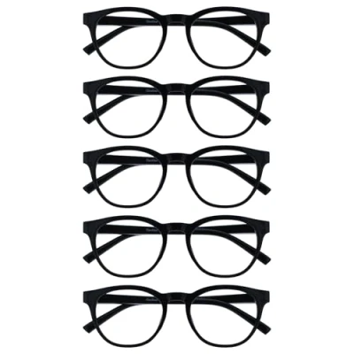 OPULIZE BLU Blue Light Blocking Reading Glasses for Women Men 5 Pack Cool Round Frame Anti Glare Computer and Gaming Eyewear UV Eyestrain Protection Improve Sleep Black +1.50